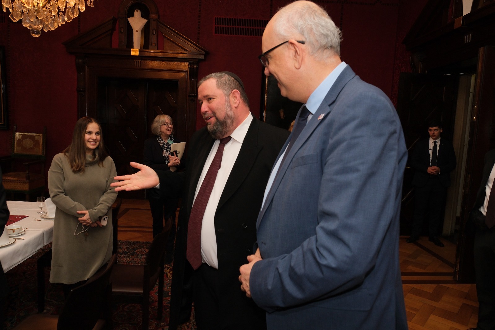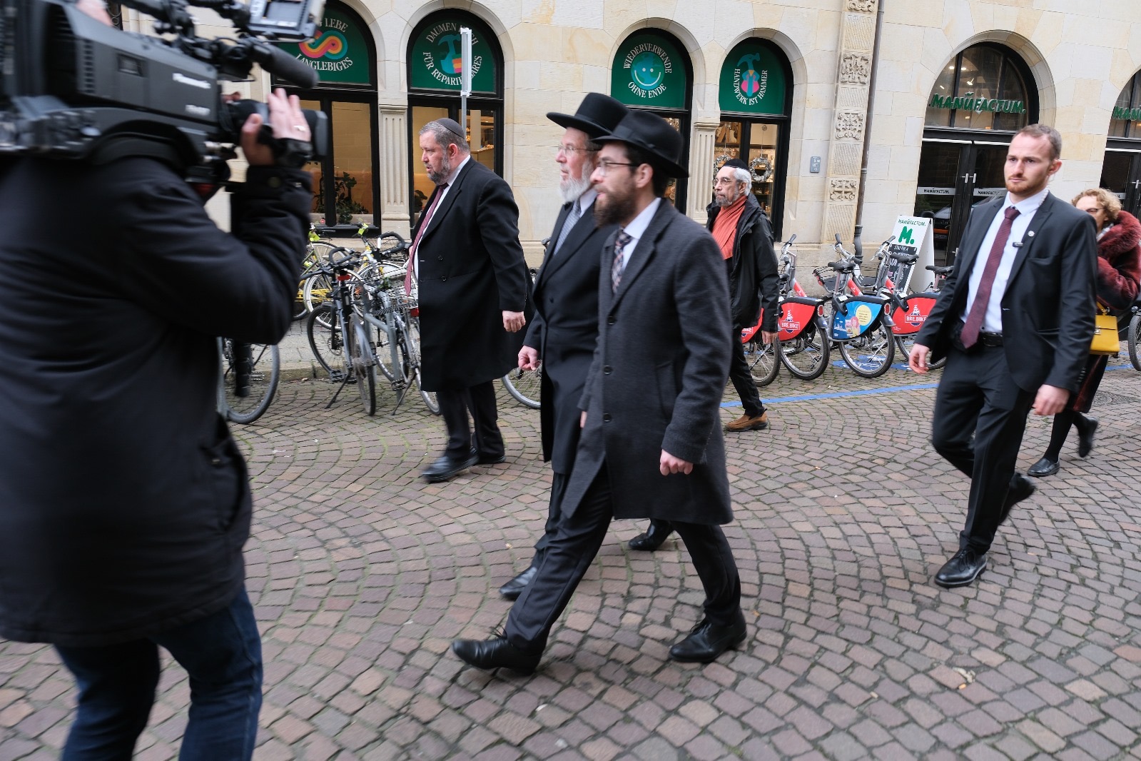Besuch des Oberrabbiners Kalman Ber Schlita anlässlich des Chanukkafestes in Bremen.